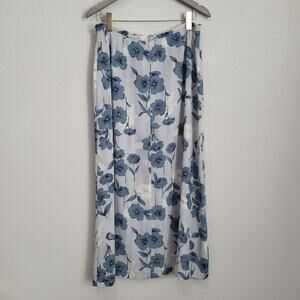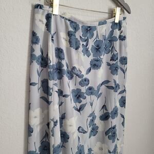 Chaus Floral Midi Skirt Womens XL 32 waist Blue Lined Vintage 90s Casual Dressy