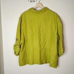 Chaus Linen-Blend Shacket — Chartreuse, Roll-Tab Sleeves, Pockets — 22W