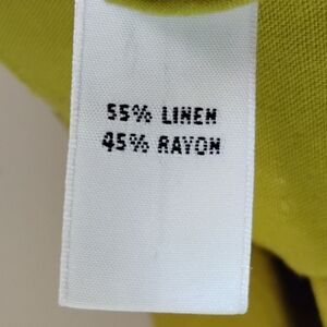 Lightweight linen/rayon shirt jacket in a bold chartreuse. Button front, chest pockets, and roll-tab sleeves for easy cuffing. Relaxed, drapey fit—wear open as a shacket or buttoned as a blouse.