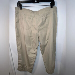 Chaus, M, khaki crop chino pant with slit hem and elastic waist with drawstring