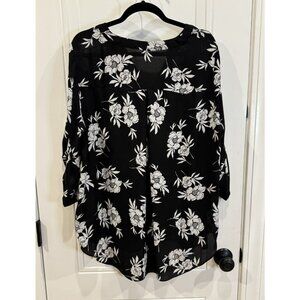 Elegant and effortless, this Chaus New York blouse (2X) features a striking black background with a white floral print, a notched neckline, and versatile 3/4 roll-tab sleeves. The lightweight flowy fabric drapes beautifully for a flattering fit—perfect for both work and weekends. Excellent condition. Approximate measurements: 27 in. armpit to armpit; 30 in. length. Please ask all questions prior to purchase.
