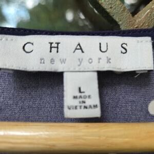 Chaus NY Women Classic Preppy Staple Navy White Polka Dot Faux Wrap Maxi Dress L