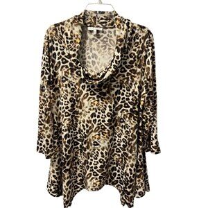 Chaus New York Animal Print Cowl Neck Top Sz XL tunic