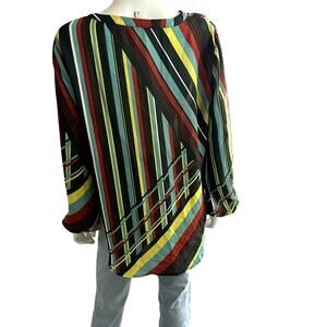 Chaus New York Long Sleeve Multicolor Striped V-Neck Shirt Top Blouse