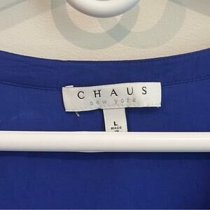 Chaus New York Womens L Blue Long Sleeve Embroidered Tunic Lagenlook Blouse Boho