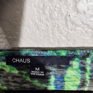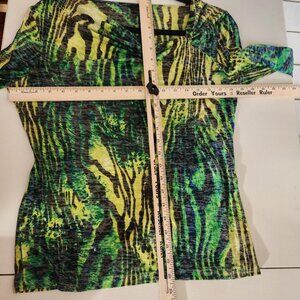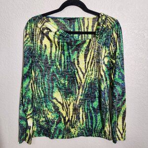 Chaus Shirt Womens Medium Green Yellow Zebra Print Long Sleeve Pullover Top