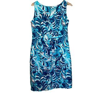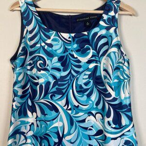 Chaus Silk Teal Navy Tiered Midi Shift Dress Size 8 Office Sheath Retro Resort