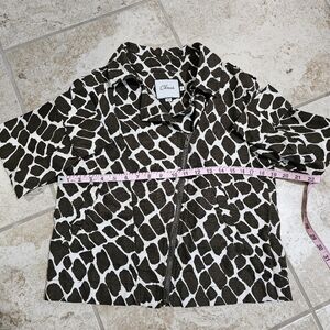 Denim size 6 jacket with a brown cheetah animal print. The two front pockets are faux. Perfect for layering, spring, and fall.