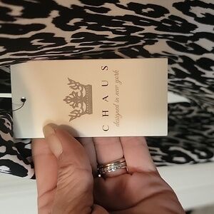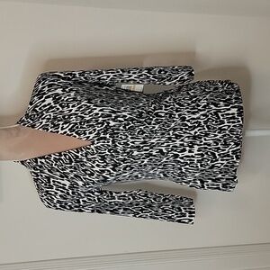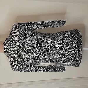 Chaus, Size S, Black and White Leopard Print V-Neck Faux Wrap Blouse, NEW
