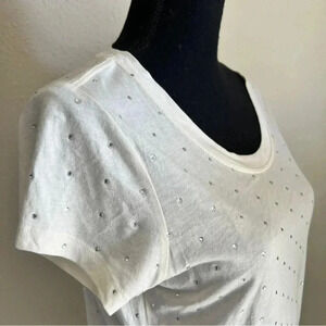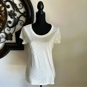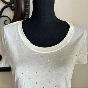 Ivory, short sleeve, crewneck, 100% Cotton, lightweight top sprinkled with silver rhinestones in EXCELLENT condition! No holes, missing rhinestones, or stains. Size: Medium NEW w/o tags.