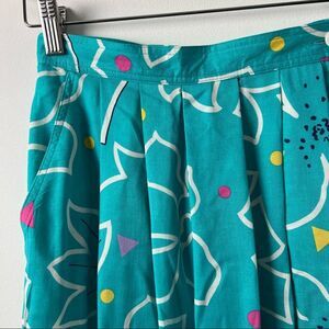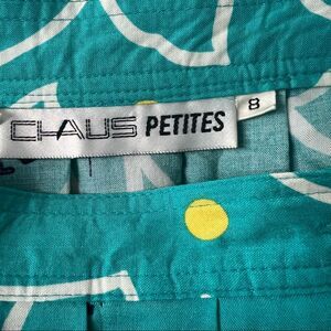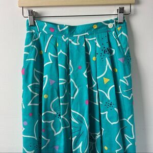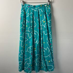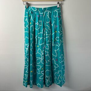 Chaus Vintage 80s Skirt MIDI Teal Vaporwave Polka Dot Flowers Womens Size 8