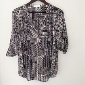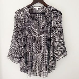 Chaus White and Black Geometric Print Women's Blouse - Size Medium