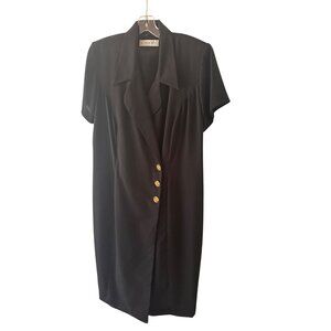 Chaus Womens Black Dress 14W Gold Buttons Short Sleeve Machine Washable