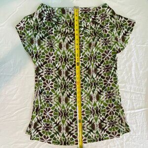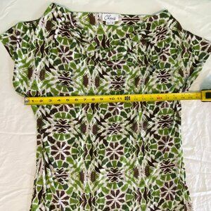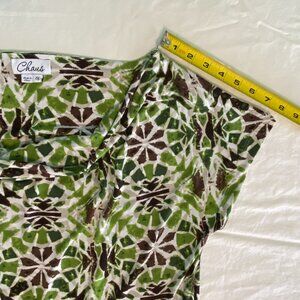 Chaus Womens Cowl Neck Blouse Size 1X, Green Brown Geometric Print โ Stretch