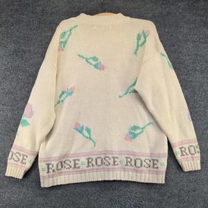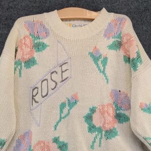 Chaus Women's Rose Pullover Knit Sweater Cream Medium Floral Crew Neck