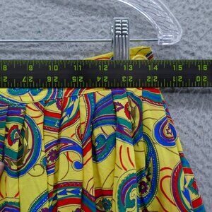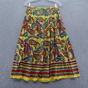 Chaus Womens Vintage Paisley Print Skirt 12 Yellow Red Blue Pleated Midi