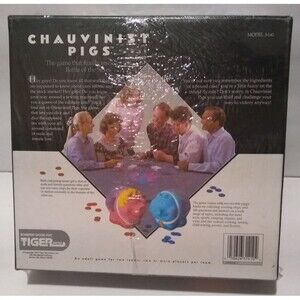 Get ready for a fun-filled night with Chauvinist Pigs, a vintage 1991 party game that finally resolves the battle of sexes. This complete game by Tiger Games is perfect for 4 players or more, and is recommended for boys and girls aged 17 years and up. With a strategic theme and no custom bundle, this game is a must-have for any game enthusiast. So, gather your friends and family and get ready to put your strategic skills to the test with Chauvinist Pigs.