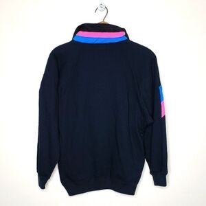 This is an absolutely FABULOUS vintage Chaver Quarter-zip Sweatshirt/Windbreaker that features a fun 80's style with geometric patterning, fun pink & blue cotton candy accent colors, a colorful striped collar, and two pockets :)