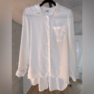 This is an oversized flowy button up blouse. Great condition no stains, some minor wear long tag.