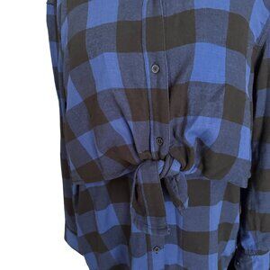 Cheap Monday Womens Blue & Black Plaid Button-Up Shirt Dress S With Waist Tie