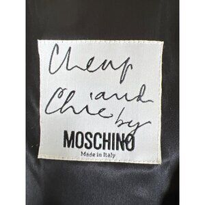 Cheap and Chic by Moschino Italy Vintage Rare Mens Size 40 Black Vest/ waist coat Brocade Tossed Medallions with Silk Earth with Fragile Made with Care, Peace, and Love Messages Woven in fabric. Self Covered Buttons. Please note Fabric damage (small tears) to back of Vest. See last five pictures, otherwise in good pre-loved vintage condition.