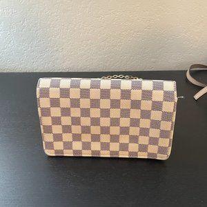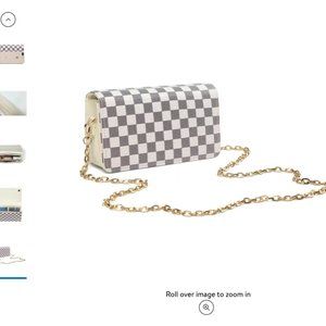 Daisy Rose Check Cross body bag - RFID Blocking with Credit Card slots clutch -PU Vegan Leather. it can be used as a shoulder bag or cross body bag or a clutch thanks to its removable chain