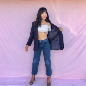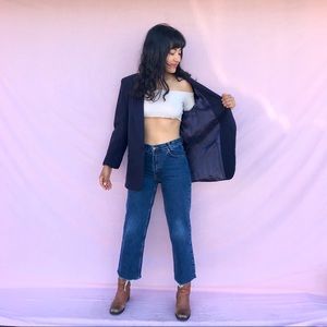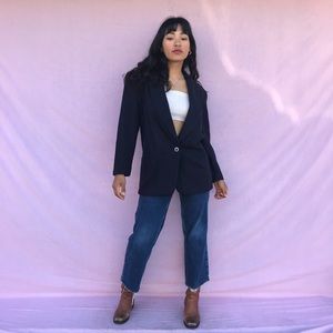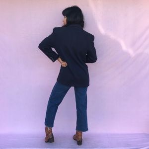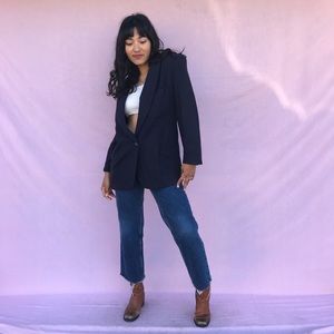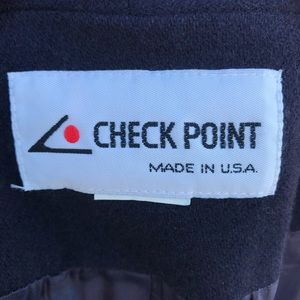 Vintage Check Point lined navy blue coat blazer with side pockets and chest pocket! Elegant and sophisticated, easily dressed down with jeans for a more casual look!