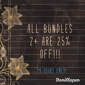 All bundles 2+ are 25% off for 24 hours only! Now until tomorrow at 5:30pm! Any bundle with 3+ items will get a small gift inside!