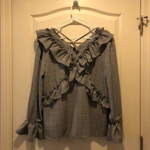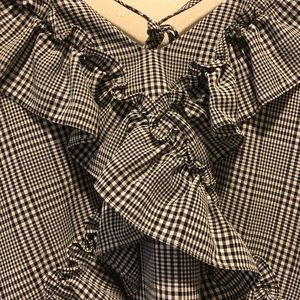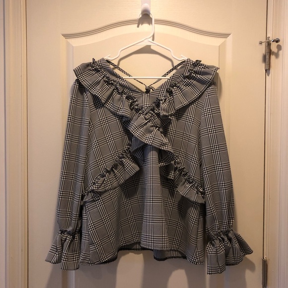 Cute black and white check pattern blouse.