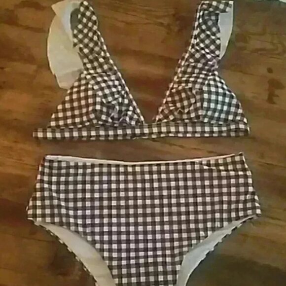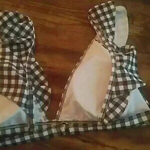 High bottom. Ruffled top with closure. Removable cups. Very small.