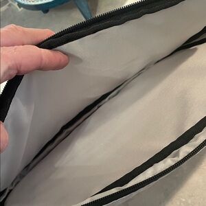 CheckMate zip top gray computer bag. These are specifically designed to allow travelers to go through airport security checkpoints without having to remove their laptops from the bag.