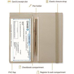 🧿Functional & Thoughtful - Comes with 1 slide slot, 2 compartments and an elastic closure strap. Keeps your checkbook, check register, credit cards, cash and other types of personal identification documents safe and organized.