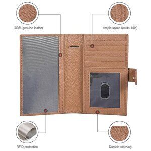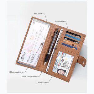 * This leather checkbook cover is both practical and stylish, measuring 6.75 inches by 3.5 inches. It has an open design that closes securely with a loop. Inside, it includes 1 note compartment, 1 ID card slot, 1 pen holder, 5 credit card slots, 1 checkbook holder, and a free divider, keeping everything neatly organized and easy to access.