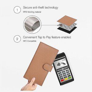 * Stay protected with our RFID-blocking checkbook cover, made from vintage leather. This cover uses special technology to block unauthorized scans and keep your personal information safe from electronic theft, offering both elegance and security.