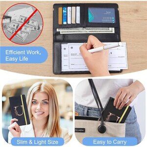 -Compact Lightweight:The size of the checkbook organizer is 7.6x4.1x0.6 inches,slim but holds lot,easy to store and carry on your person at all times without taking up too much space,suits for your daily and business needs