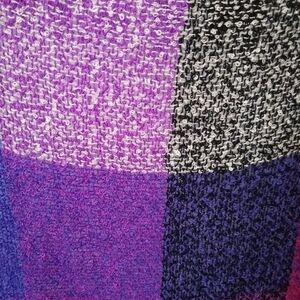 Great condition Claire Fraser style woven square scarf with black, purple, pink and white big checks.