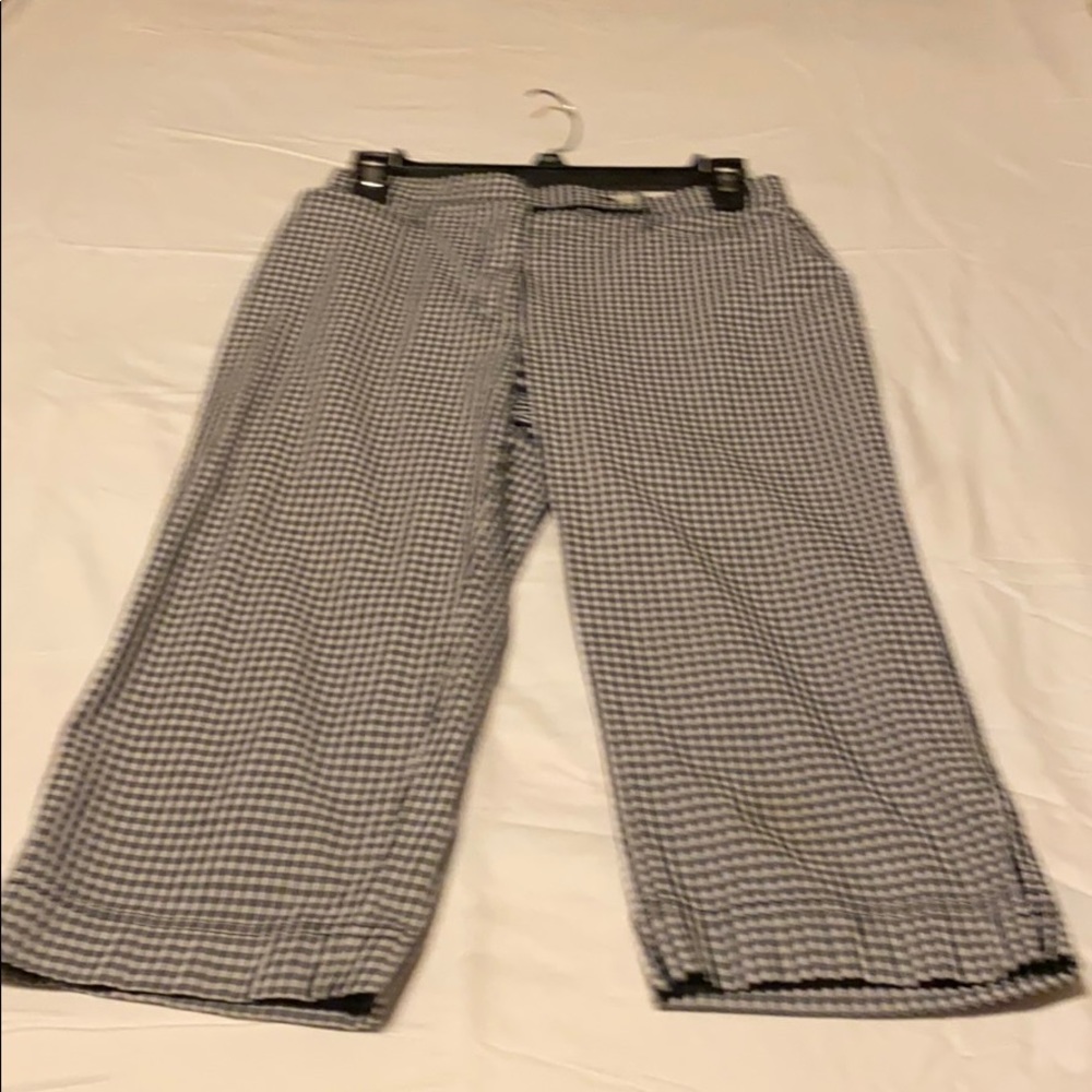 Causal checkered capris. Size 6 p. Westbound from Belk. Only worn once, to short in the seat for me as I’m not petite.