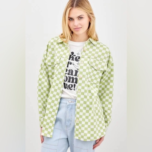 Checker Textured Button Up Jacket