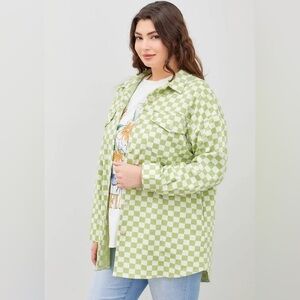 Jacket Checkered Collar Detail Long Sleeve Model is wearing 1Xl.