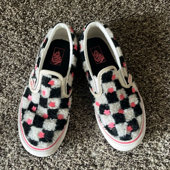 Girl size 4 1/2 bands excellent condition worn only a few times. Black-and-white checker with pink star detail.