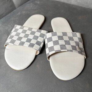 Checkerboard Slip-On Flat Sandals Black & White Slides – Women's EU 40