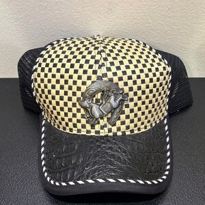 Stylish checkered cap in black and cream. Perfect for adding a unique touch to any outfit.New with out tags