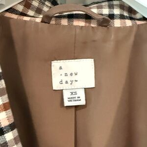 Elevate your style with this chic plaid blazer. Perfect for any occasion, it features a classic design with a modern twist. The brown and camel hues add a touch of sophistication to your wardrobe. Perfect for layering!