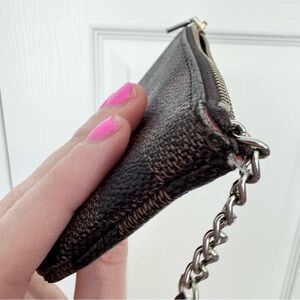 Stylish checkered brown key pouch with gold hardware. Condition is as shown, some wear to edges.