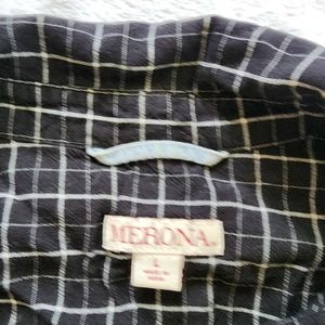 Black and white checker pattern plaid button up comfortable and loose fit by merona size Large