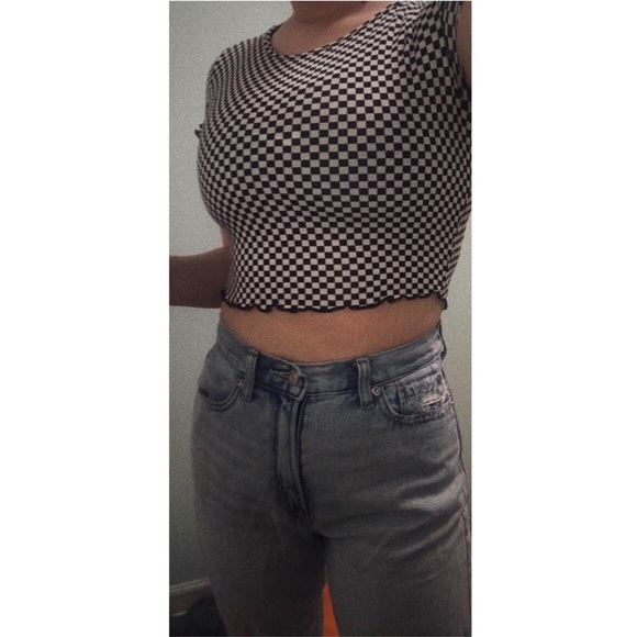 Checkered crop top from Lara’s boutique, has ruffles on the sleeves and at the bottom of the shirt, worn only once or twice.
