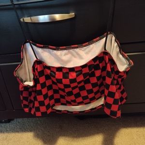 I only wore this a few times, when I bought it the tag was removed, but it fits like a large and is stretchy.
