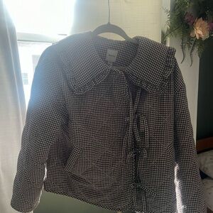 NWT Anthropologie Maeve jacket. Checkered jacket with a ruffle collar and bow details. Soft fabric. Could easily fit a small or potentially a medium