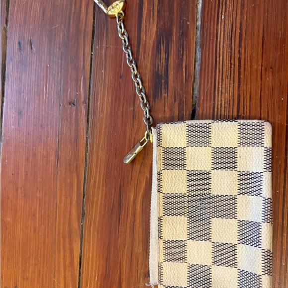 Stylish checkered key pouch with chain. Features a classic design. Looks very expensive.
