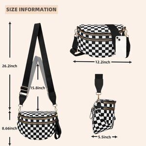 Checkered Nylon Crossbody Bag Women Large Travel Purse with Multiple Compartment
